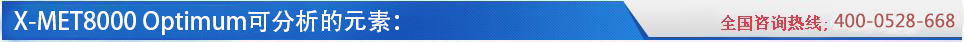 X-MET8000 Optimum可分析的元素范围是元素周期表中原子序数12Mg到92U之间的元素。X-MET8000 Optimum工厂预制的基本参数法校准曲线可分析的元素包括Ag, Al, Au, As, Bi, Cd, Cr, Co, Cu, Fe, Hf, In, Ir, Mg, Mo, Mn, Nb, Ni, P, Pd, Pt, Pb, Re, S ,Se, Si, Sn, Sb, Ta, Ti, V, W, Y, Zn, Zr等35种元素,亦可根据客户特殊需求增加特殊分析元素。